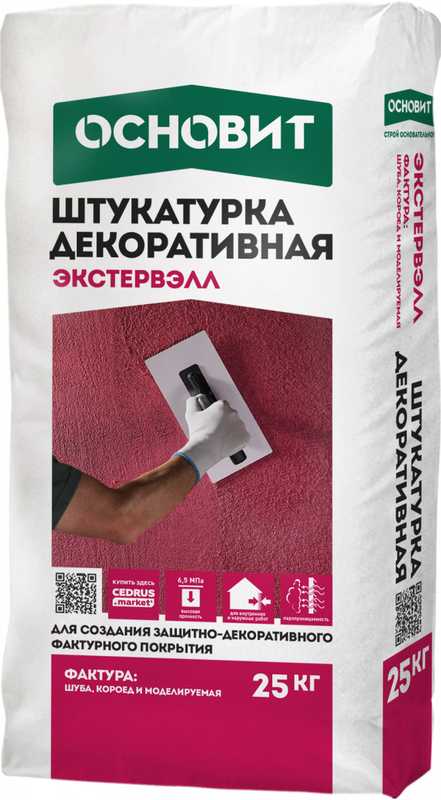 Штукатурка минеральная МОДЕЛИРУЕМАЯ ОСНОВИТ ЭКСТЕРВЭЛЛ OM-1.0 WC СУПЕРБЕЛАЯ (фракция - 1,0 мм)