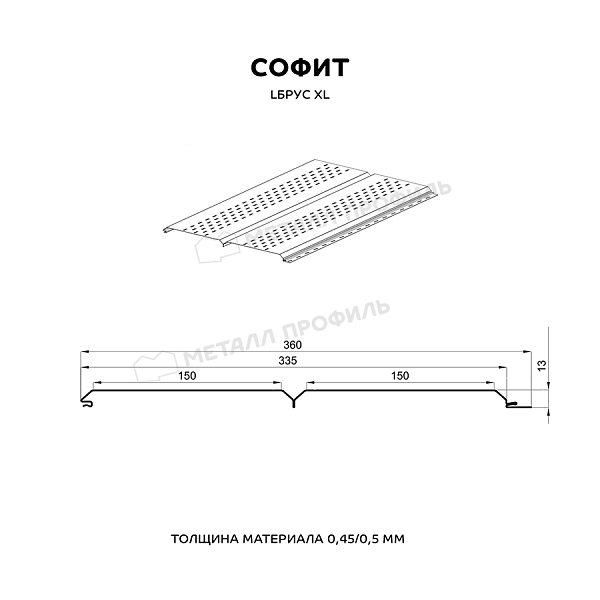 Софит МЕТАЛЛ ПРОФИЛЬ перфор. Lбрус-XL-14х335 (VikingMP-01-9005-0.45)